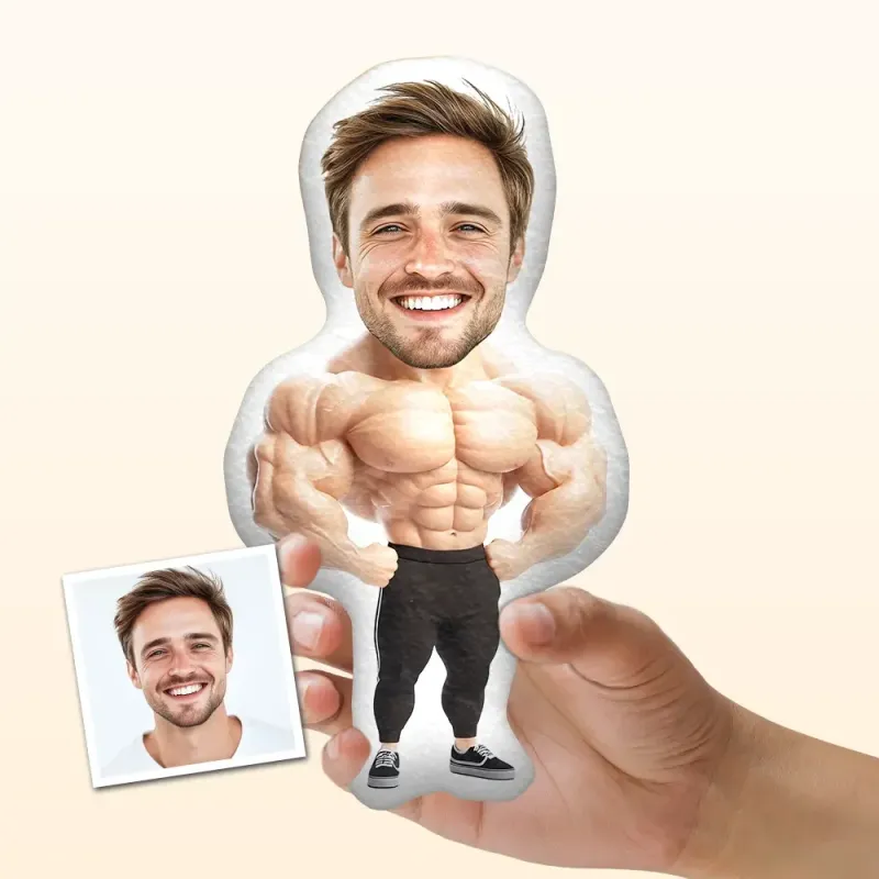 Laman utama / Personalized Minime Throw Pillow Gym Muscle In Black Pants Custom Photo Pillow Gift for Him