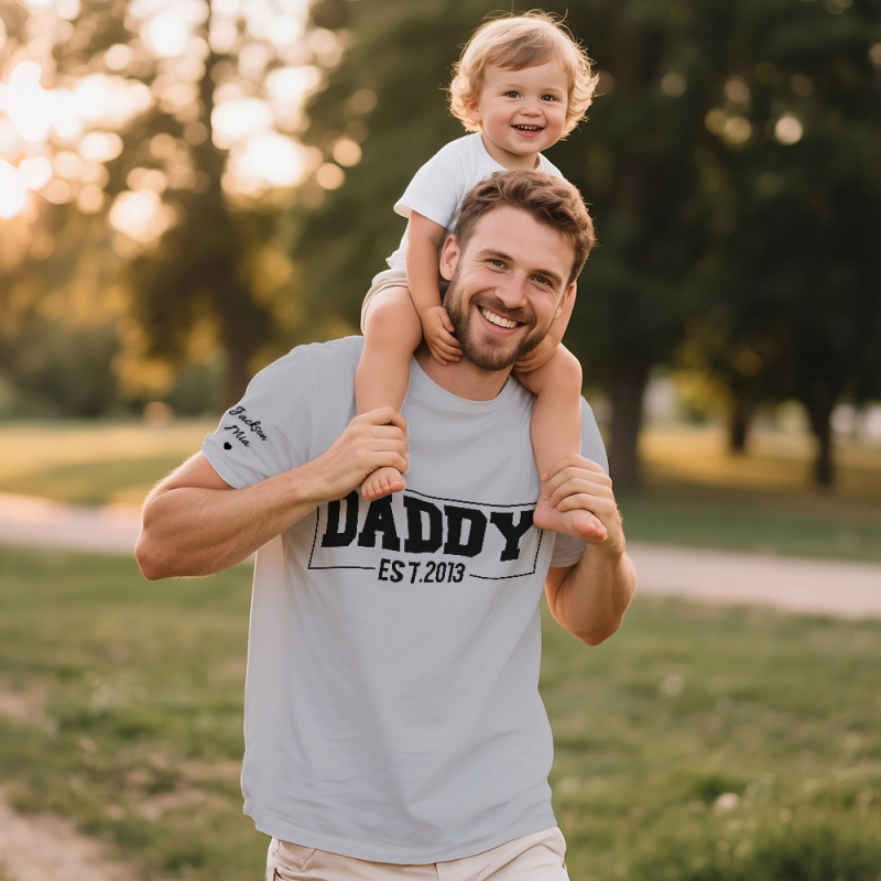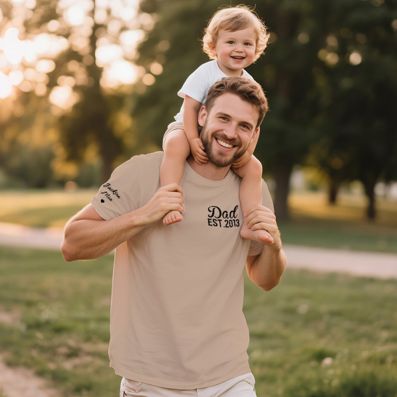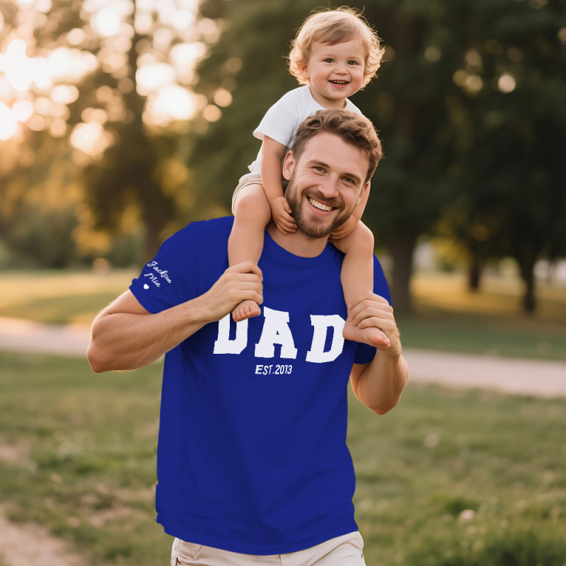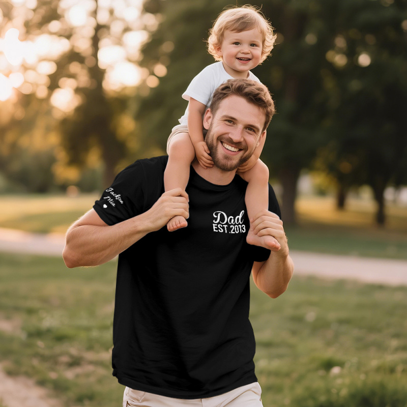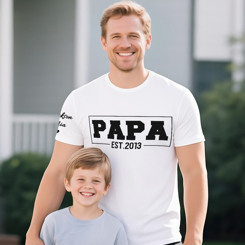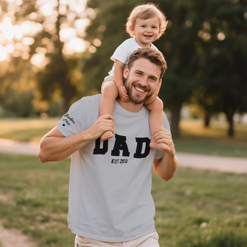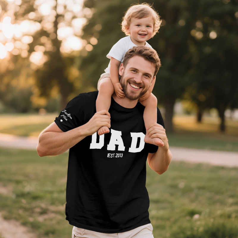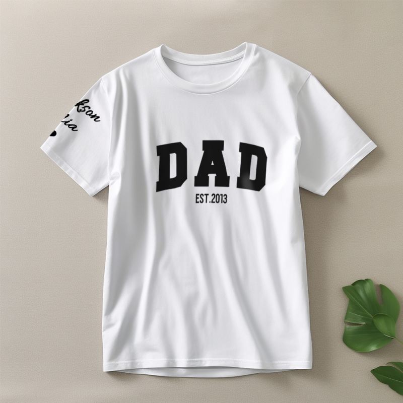 Personalized T-shirt Dad with Custom Name Puff Print Design Creative Father's Day Gift for Dear Papa