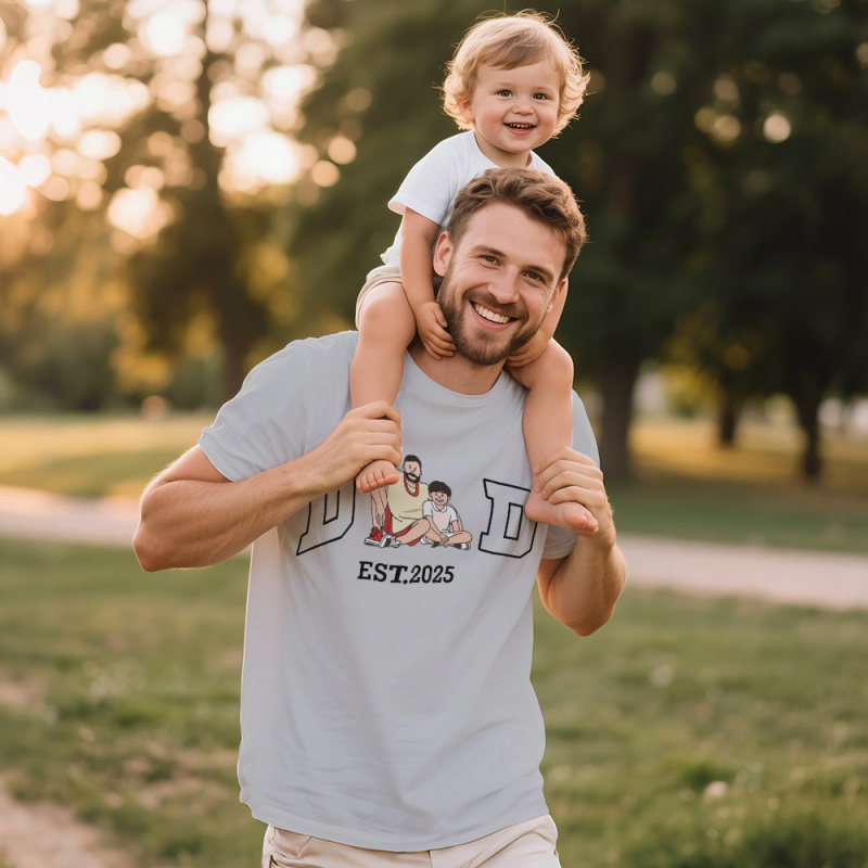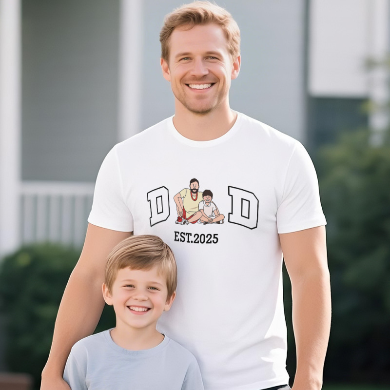 Personalized T-shirt Embroidered Dad with Custom Photo Design Unique Gift for Father's Day