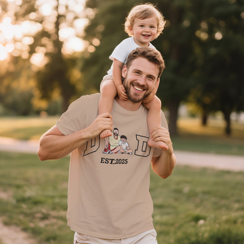 Laman utama / Personalized T-shirt Embroidered Dad with Custom Photo Design Unique Gift for Father's Day