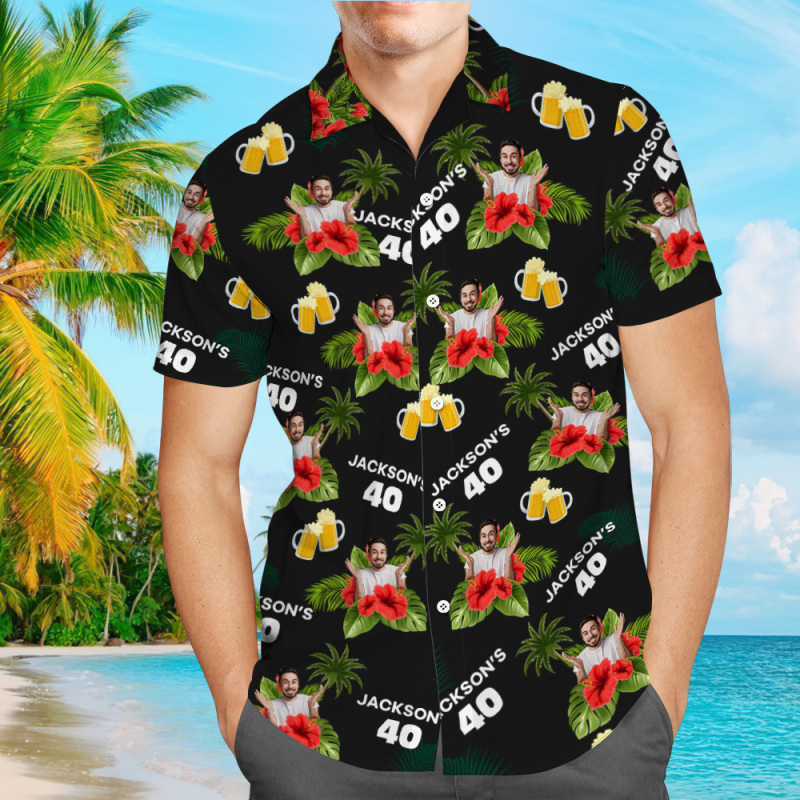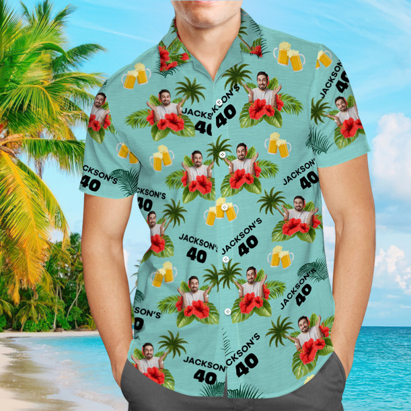 Custom Birthday Shirt with Faces Hawaiian Shirt with Text Birthday Party Shirt for Men Birthday Gifts