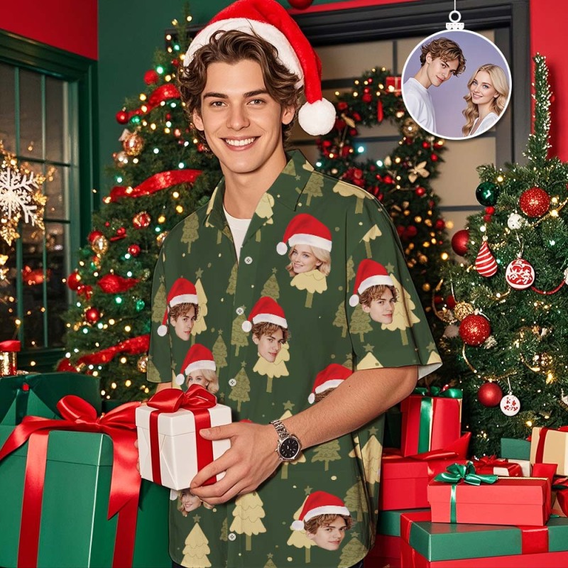 Custom Christmas Shirt with Face, Custom Face Shirt, Christmas Shirt Family, Xmas Shirt, Custom Picture Hawaiian Shirt for Bachelor Party Christmas tree Hawaiian shirt