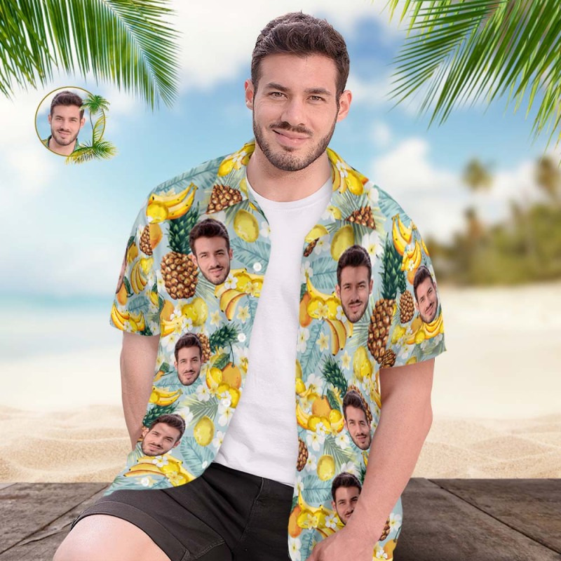 Home / Custom Face Hawaiian Shirts Personalized Photo Gift Men's Christmas Shirts Tropical Fruits