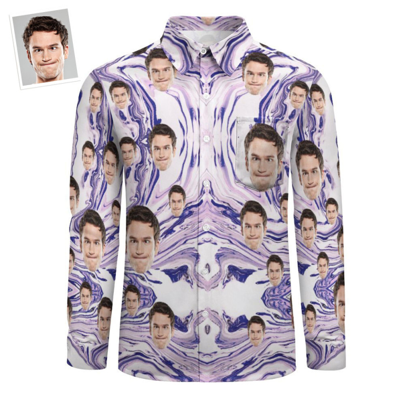 Home / Custom Face Purple Marbling All Over Print Large Long Sleeve Shirt