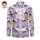 Custom Face Purple Marbling All Over Print Large Long Sleeve Shirt