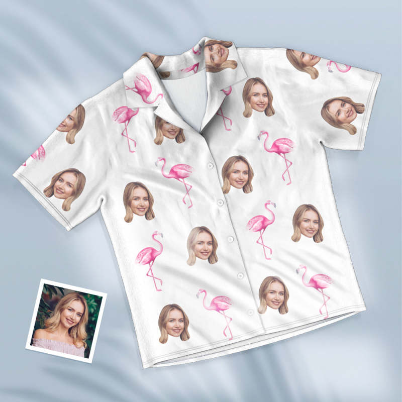 Custom Face Short Sleeved Pajamas Personalised Women's Sleepwear Flamingo Gifts For Her