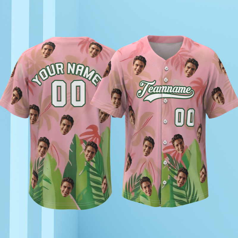 Custom Face Tropical Pattern Custom Baseball Jersey Personalized Jersey for Beach & Party