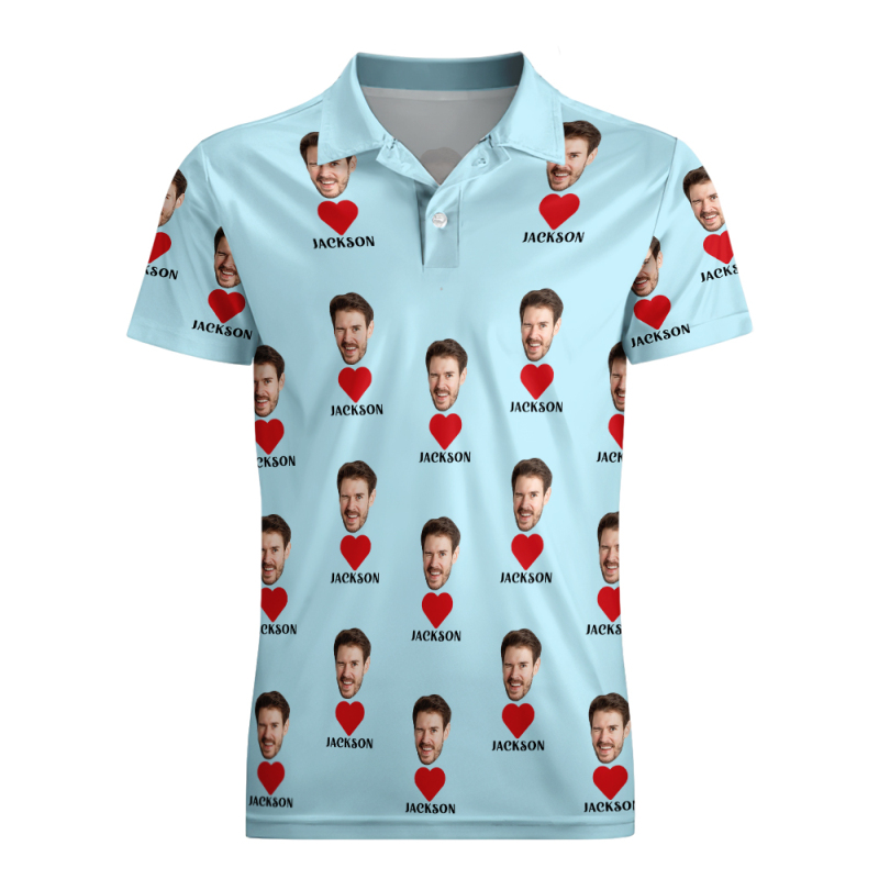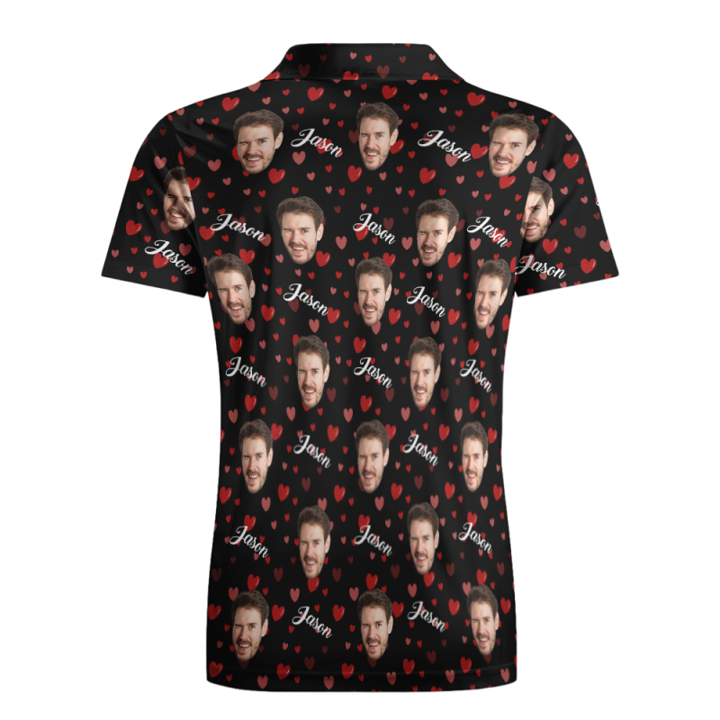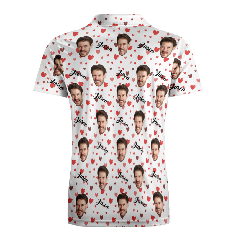Home / Custom Name Polo Shirt Personalized Hearts Short Sleeve Golf Shirt with Picture Logo Custom Polos for Men