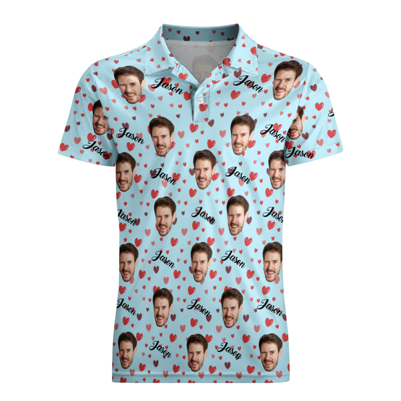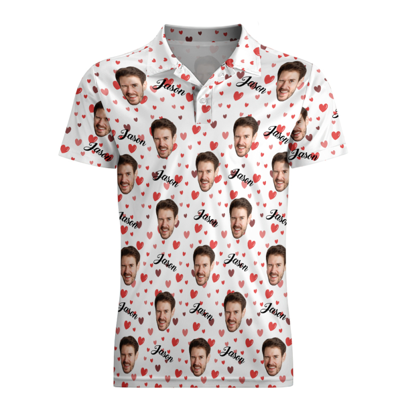 Custom Name Polo Shirt Personalized Hearts Short Sleeve Golf Shirt with Picture Logo Custom Polos for Men