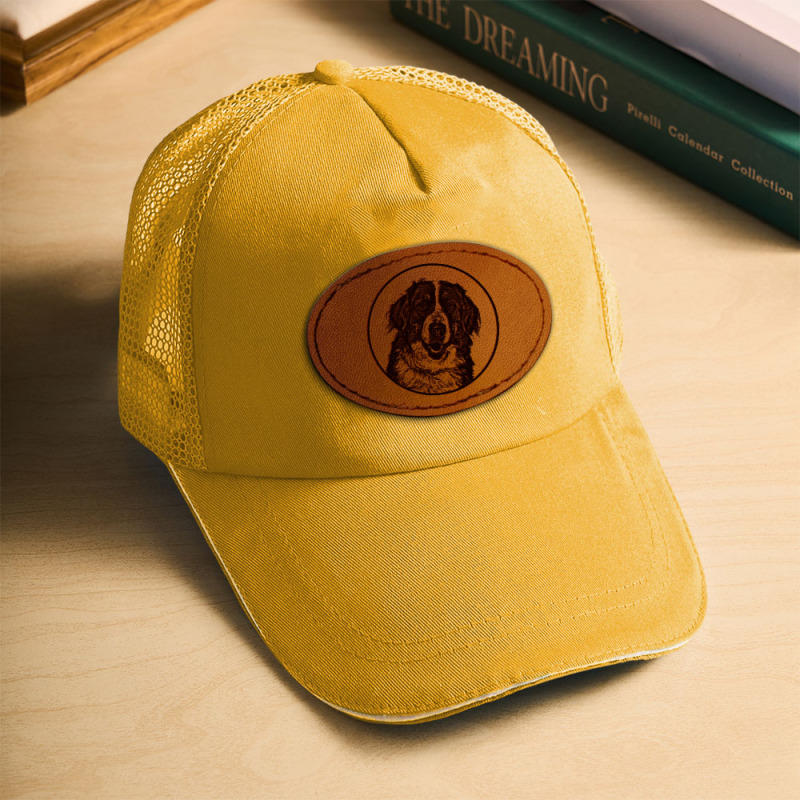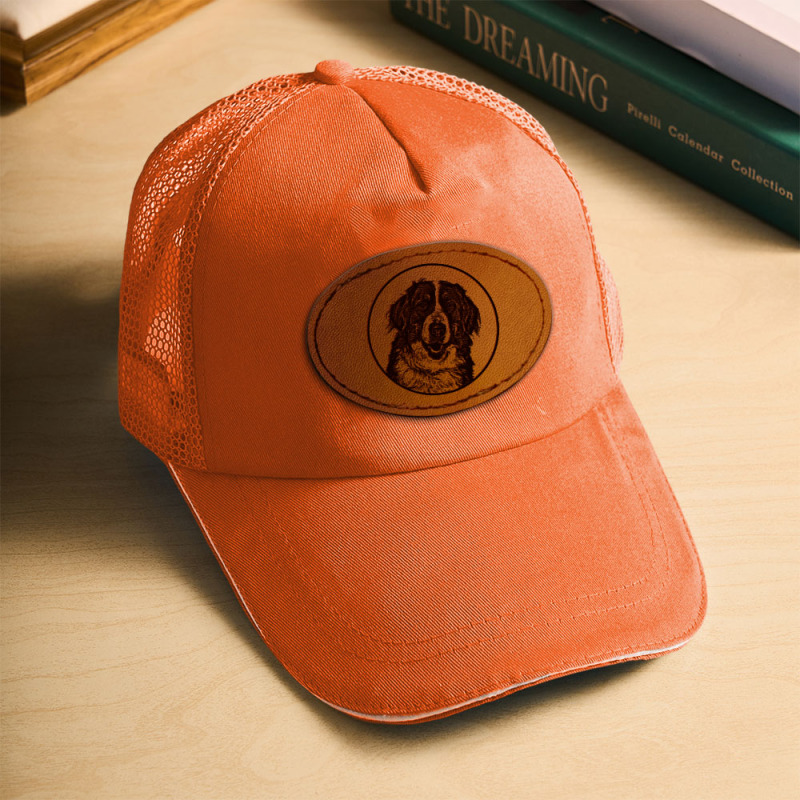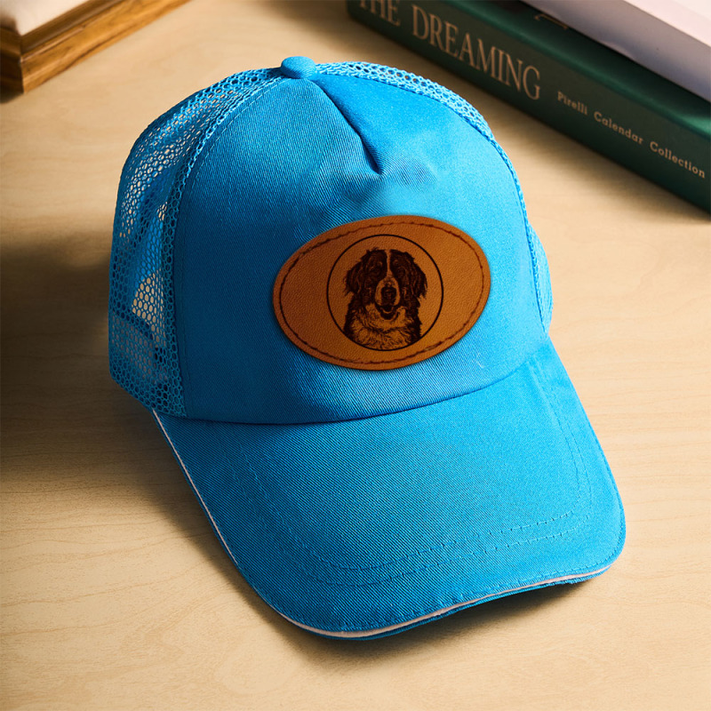 Home / Custom Oval Leather Patch Mesh Baseball Cap, Photo Upload & Engraving Available