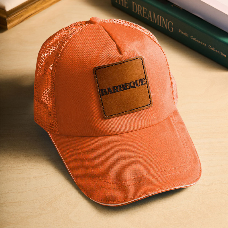 Elevate your style with this customizable mesh-back baseball cap, perfect for adding a personal touch or branding. Made with a durable yet breathable polyester mesh, the cap provides excellent ventilation, keeping you cool and comfortable. The front features a premium leather patch that can be personalized with your logo, design, or message, giving it a unique, high-end look.