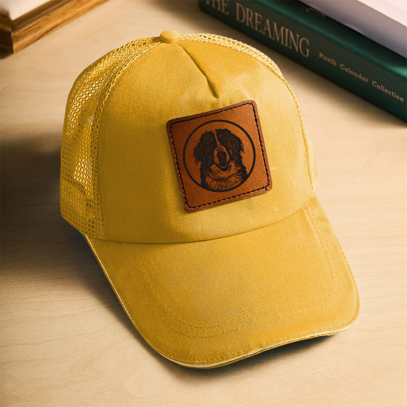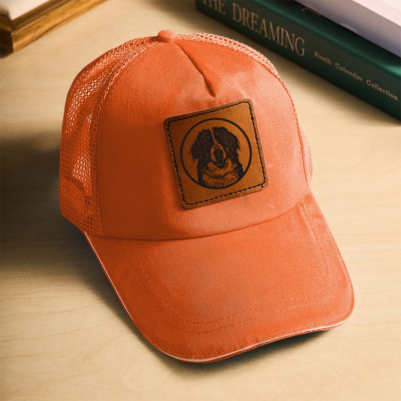 Home / Custom Pet Leather Engraved Hat Leather Patch Hat Photo On Hat Personalized Mesh Baseball Cap With Leather Patch
