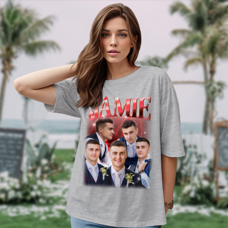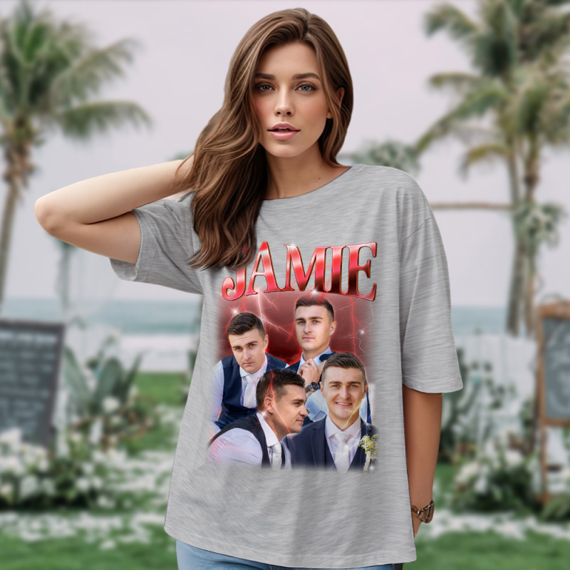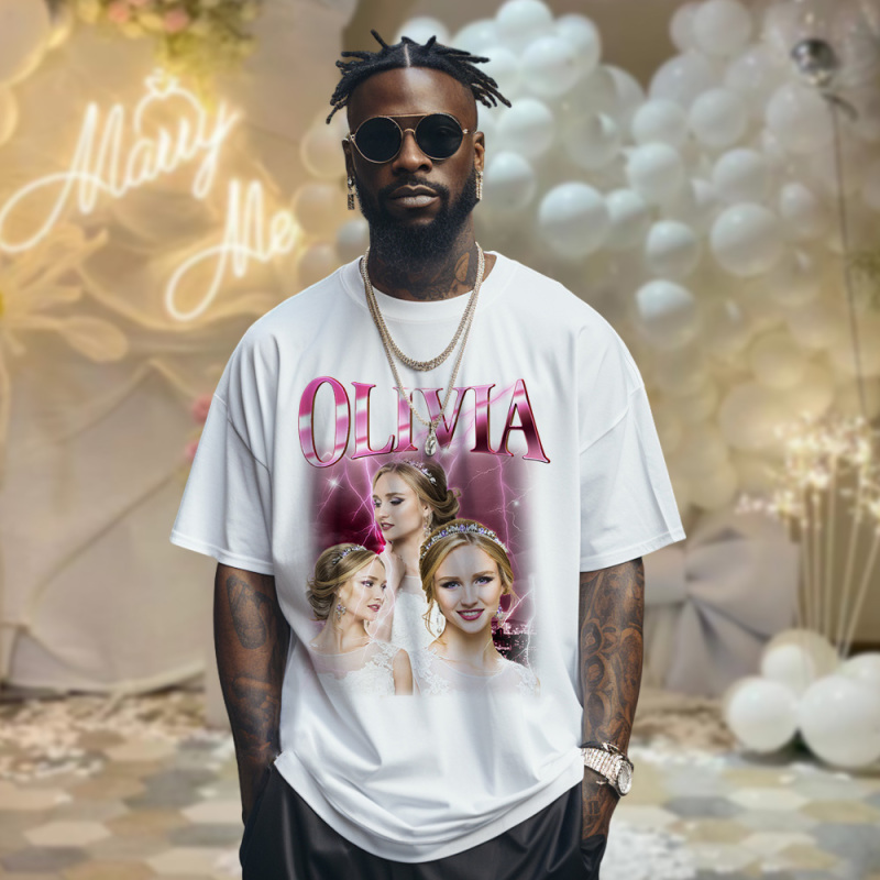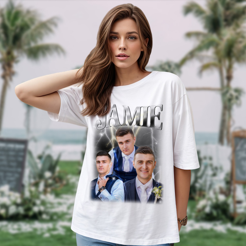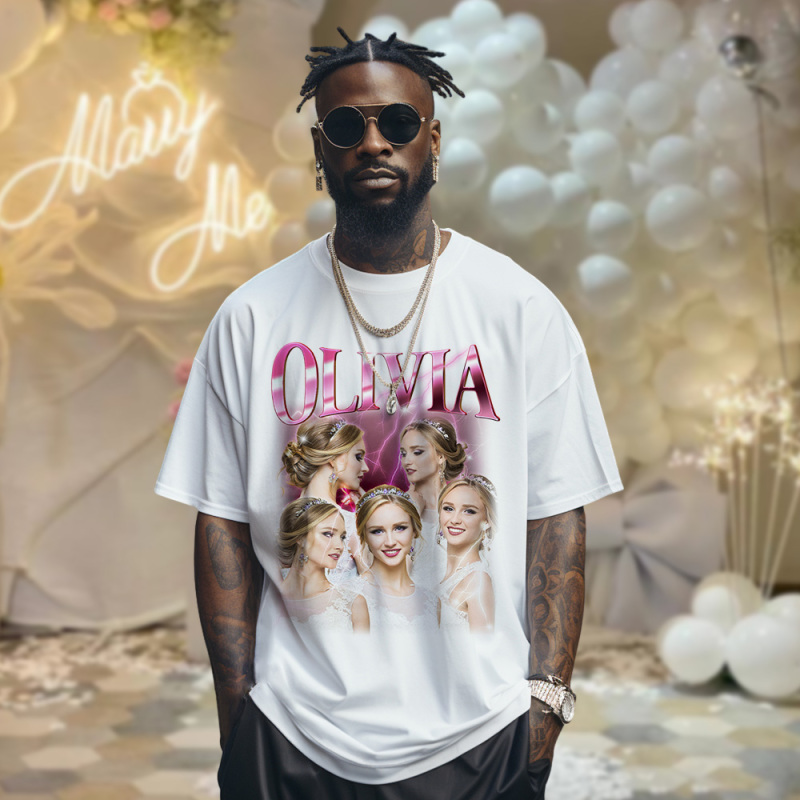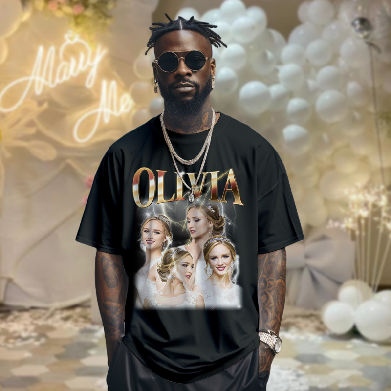 Custom Photo Vintage Tee Personalized Name T-shirt for Couple Gift For Wedding