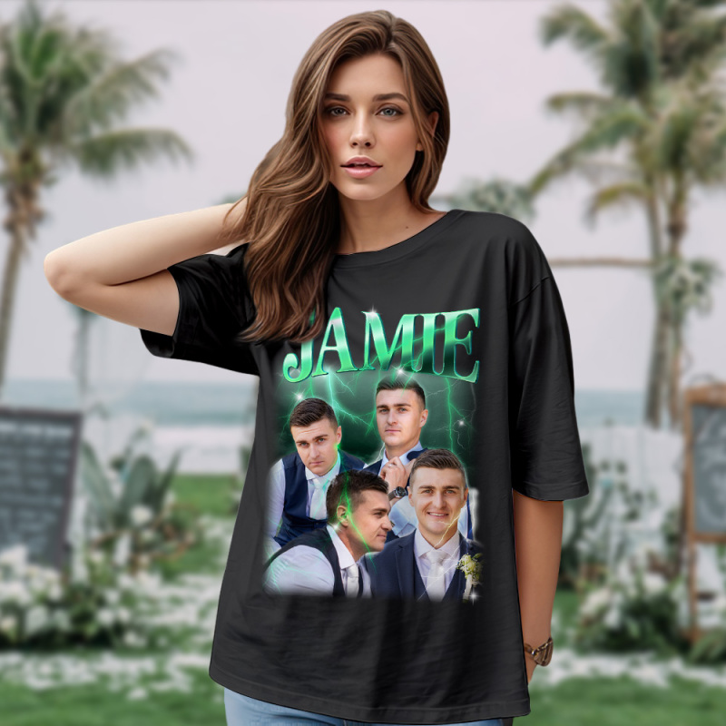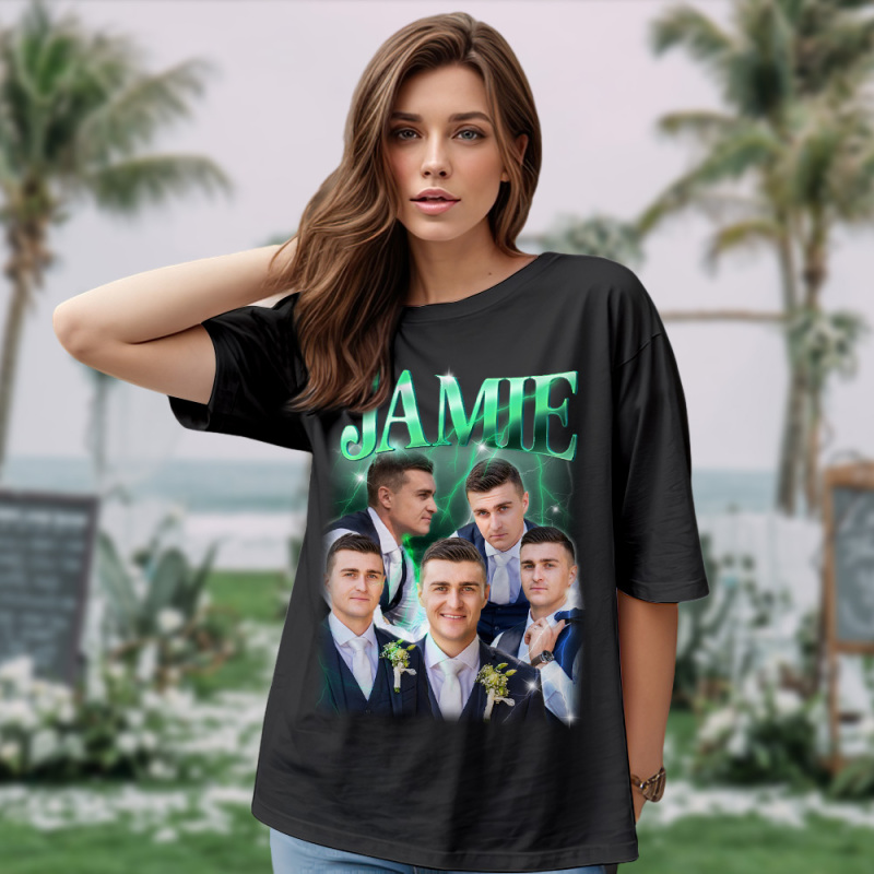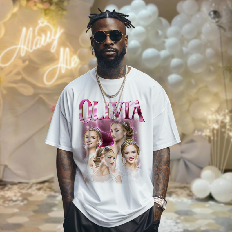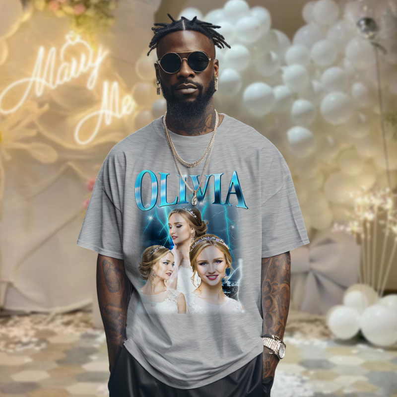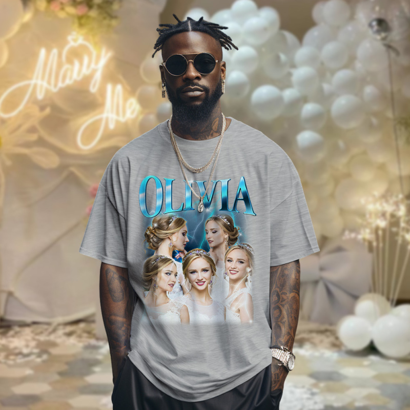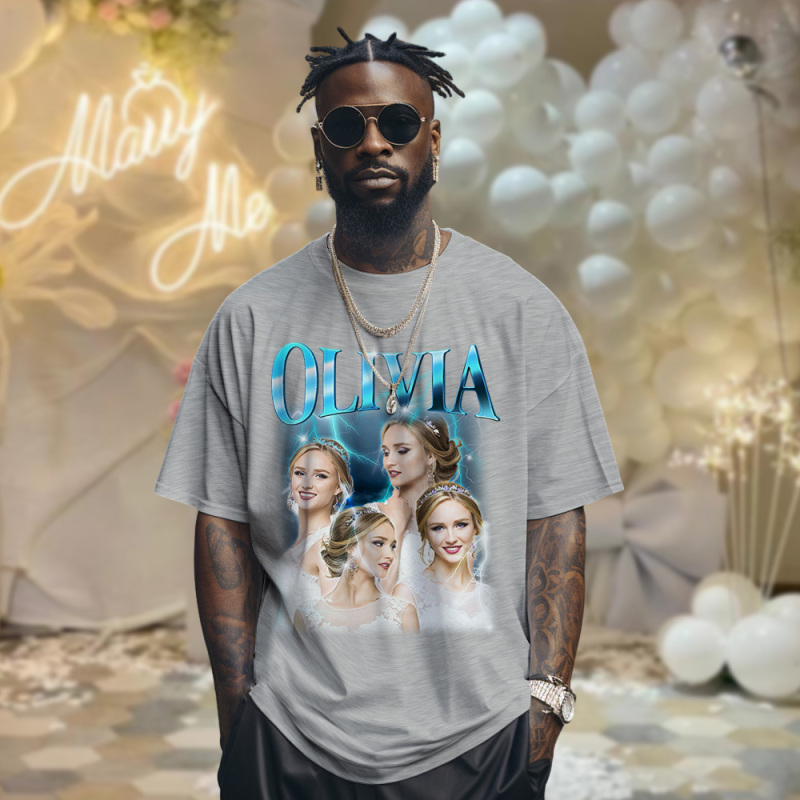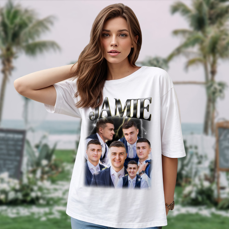 Custom Photo Vintage Tee Personalized Name T-shirt for Couple Gift For Wedding