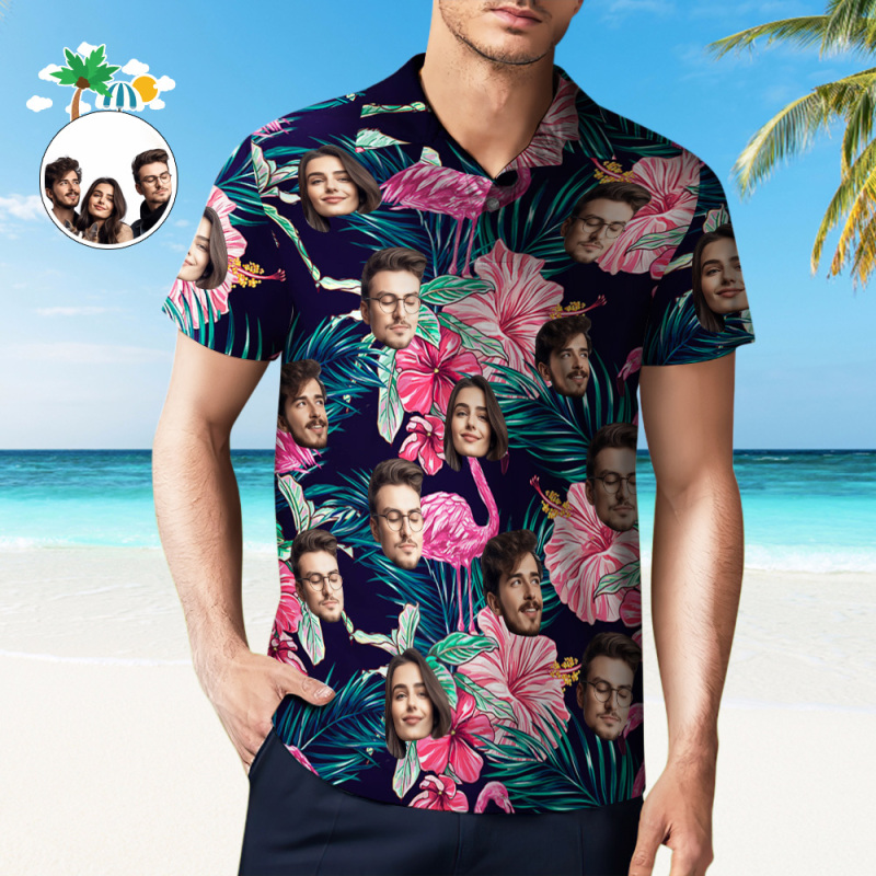 Home / Custom Polo Shirt with Face Personalized Flamingo Flower Polo Shirt for Men Gift for Him