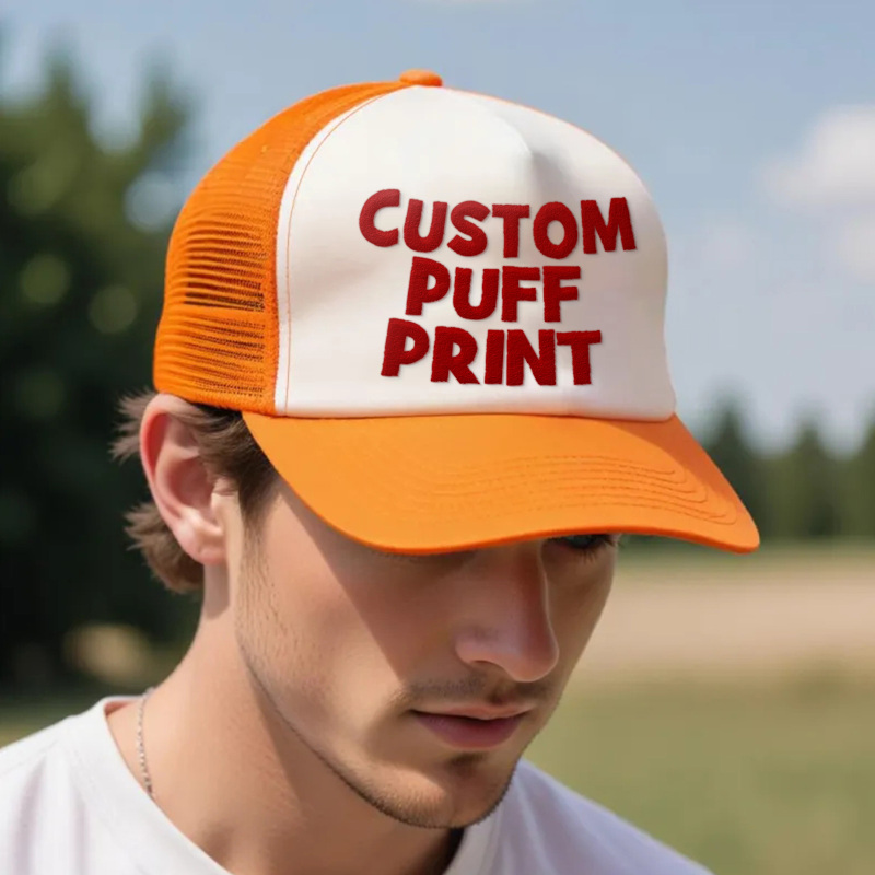 Elevate your style with our Custom Puff Print Trucker Hat. Creating a unique and personalized design. Enjoy the benefits of both style and comfort with this one-of-a-kind hat. This hat boasts a unique color varies with temperature, adding a touch of enchantment to your attire.