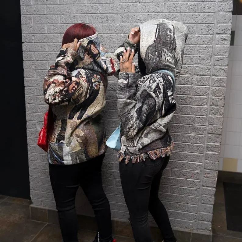 - Customizable Vintage Photo Design: Upload your favorite photo and have it transformed into a beautiful, vintage-style tapestry print that covers the front of the hoodie.