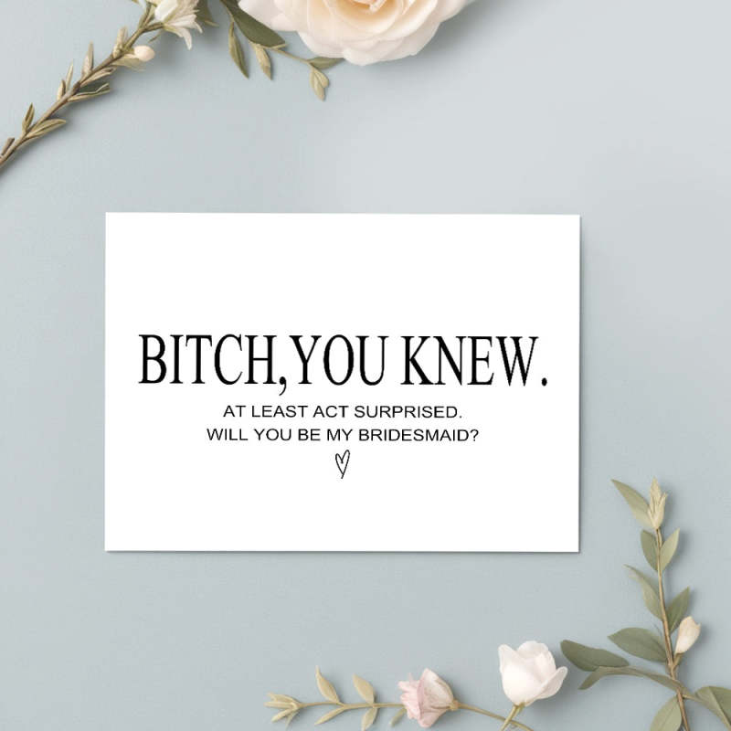 Pop the question to your ladies with this charming "Will You Be My Bridesmaid" card. Perfect for bridesmaid proposals, this card is a sweet way to ask your friends to stand by your side on your big day. Show your fun-loving side with this playful and quirky card!