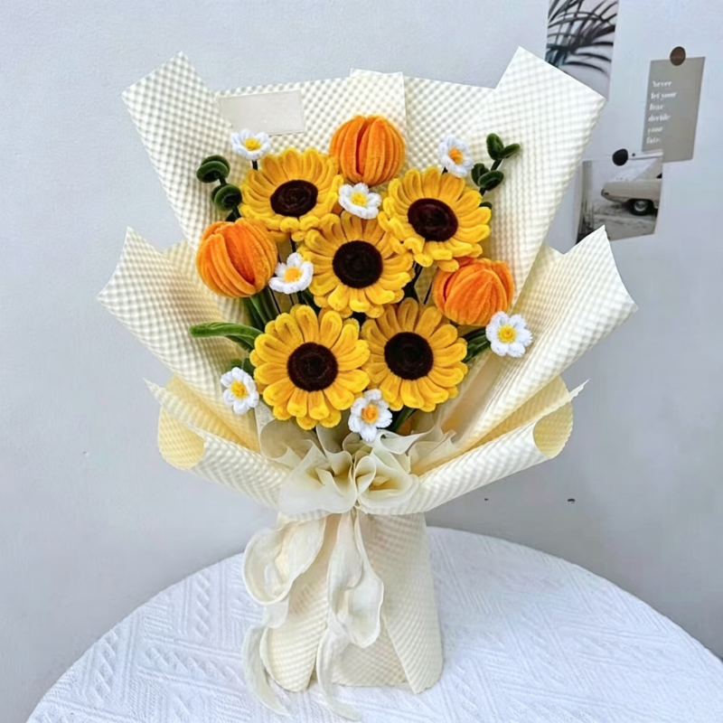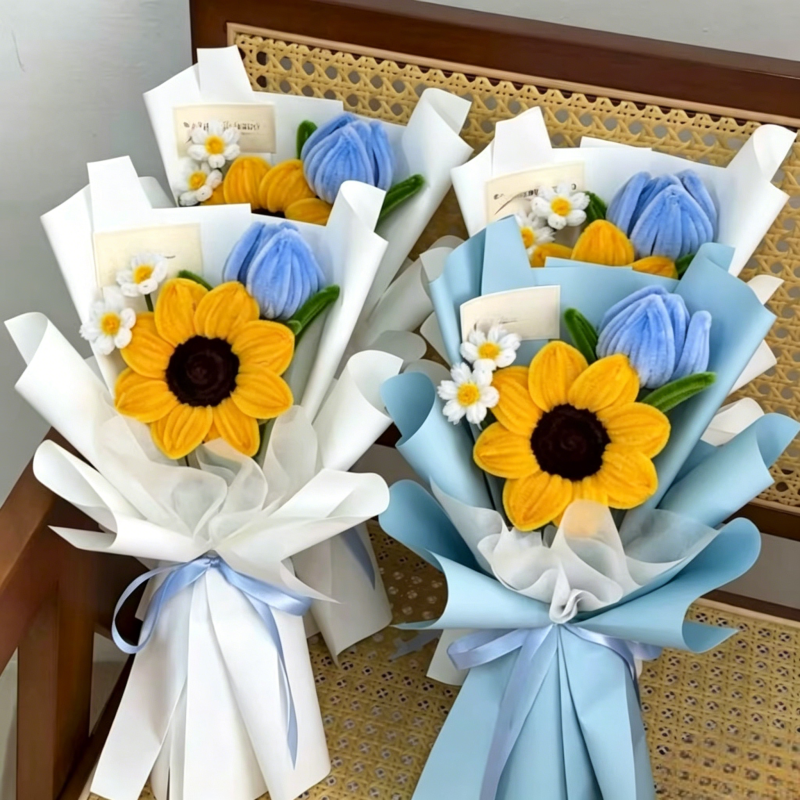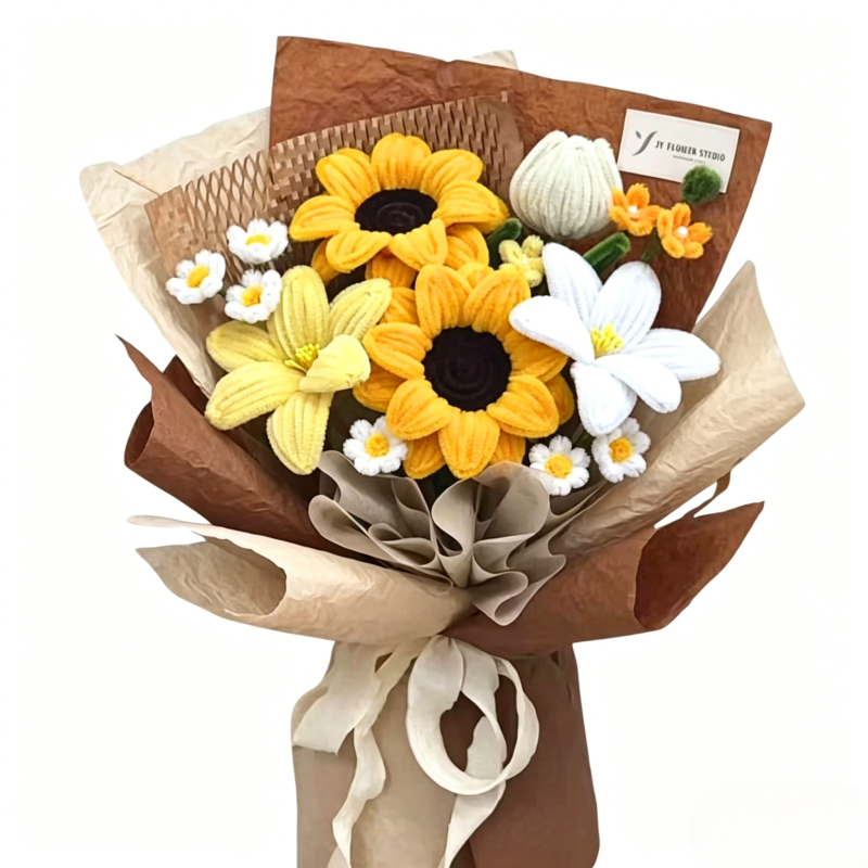 🌻 Handmade with Love – Every petal, leaf, and stem is carefully twisted and shaped by hand. No two flowers are exactly alike, giving each bouquet a unique, artisanal charm.