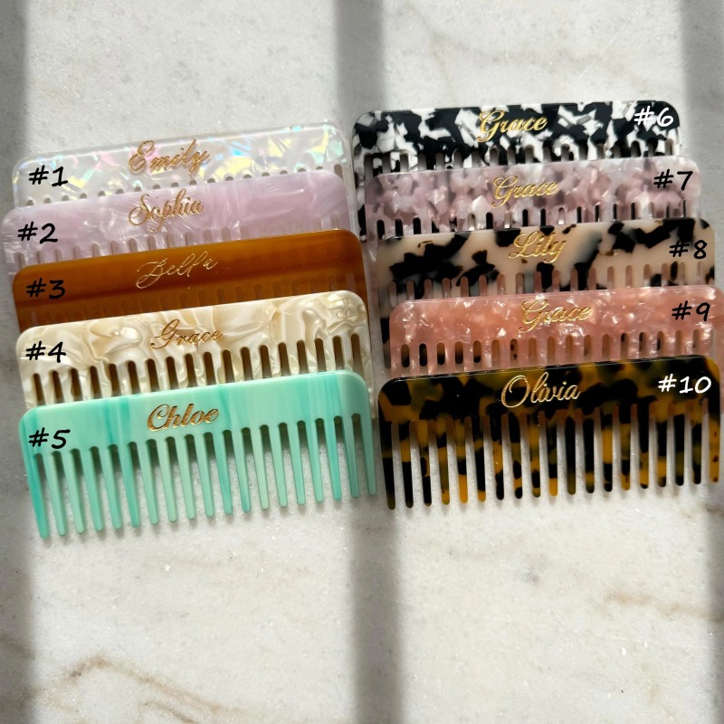 This personalized wide-tooth comb allow you to create a piece that truly reflects your personality. Compact and easy to carry, it slips perfectly into your makeup pouch, handbag, or travel case - ideal for quick grooming on the go.
