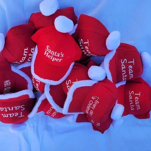 Home / Santa Baseball Hats Youth Size Adult Size Custom Embroidered Small Business Logo Christmas Wear