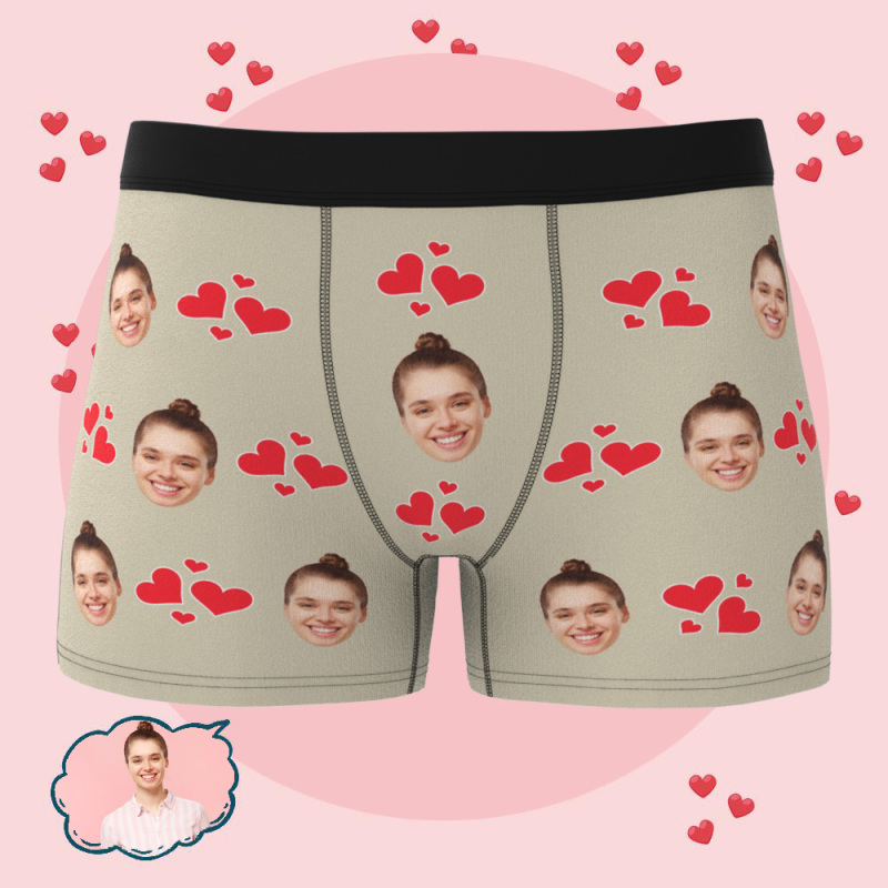 Custom Heart Face Boxers Popular Boxer Shorts Men's Underwear Valentine's Day Gifts