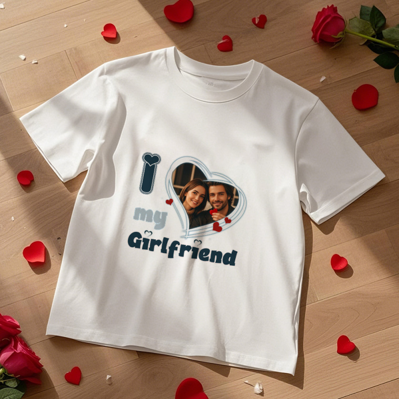 首页 / Custom Vintage Photo Printing T-shirt Personalized I Love Him Her Photo Vintage T-shirt