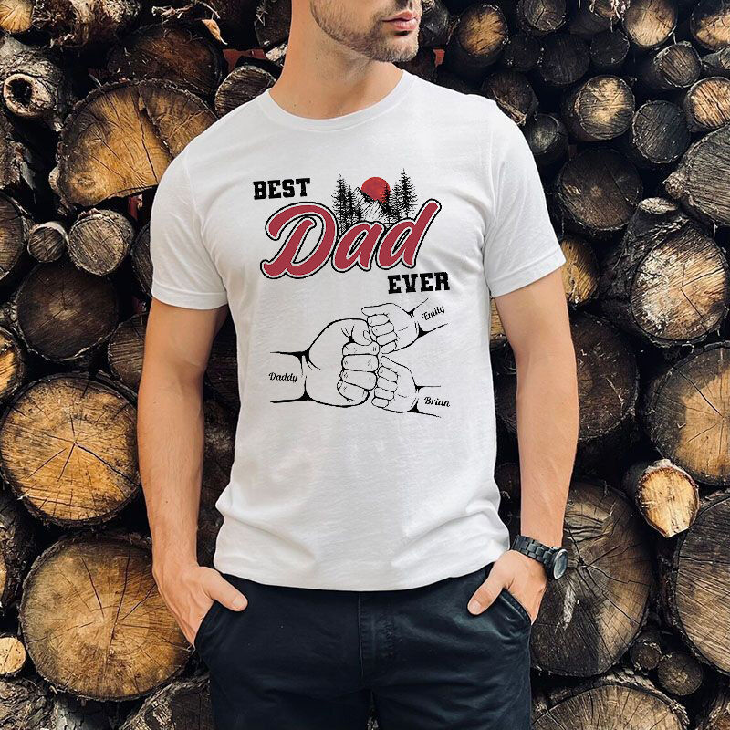 Personalized T-shirt Best Dad Ever with Fist Bump Custom Names Cool Design Perfect Gift for Father's Day